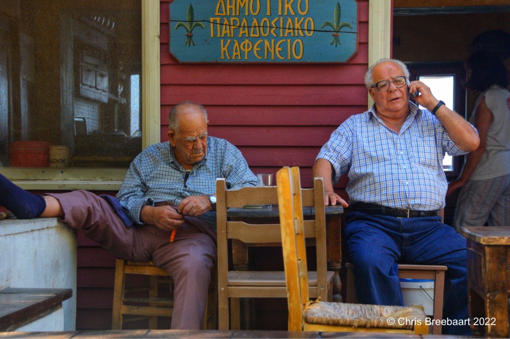 The two gentlemen are two Greek living on Lesbos. (The shot of the terrace with confused Greek men is also Lesbos, the first photo I put on WordPress).