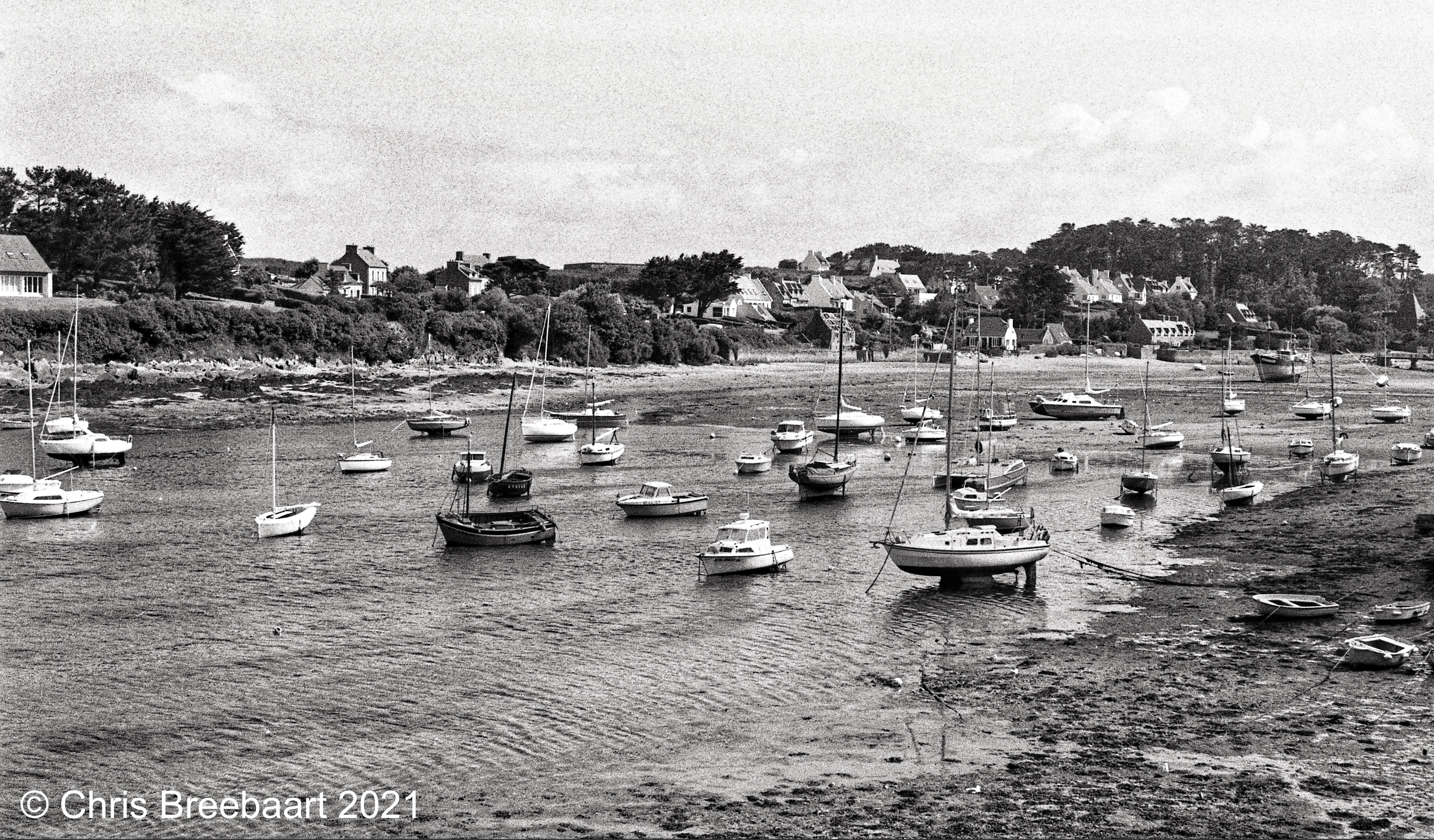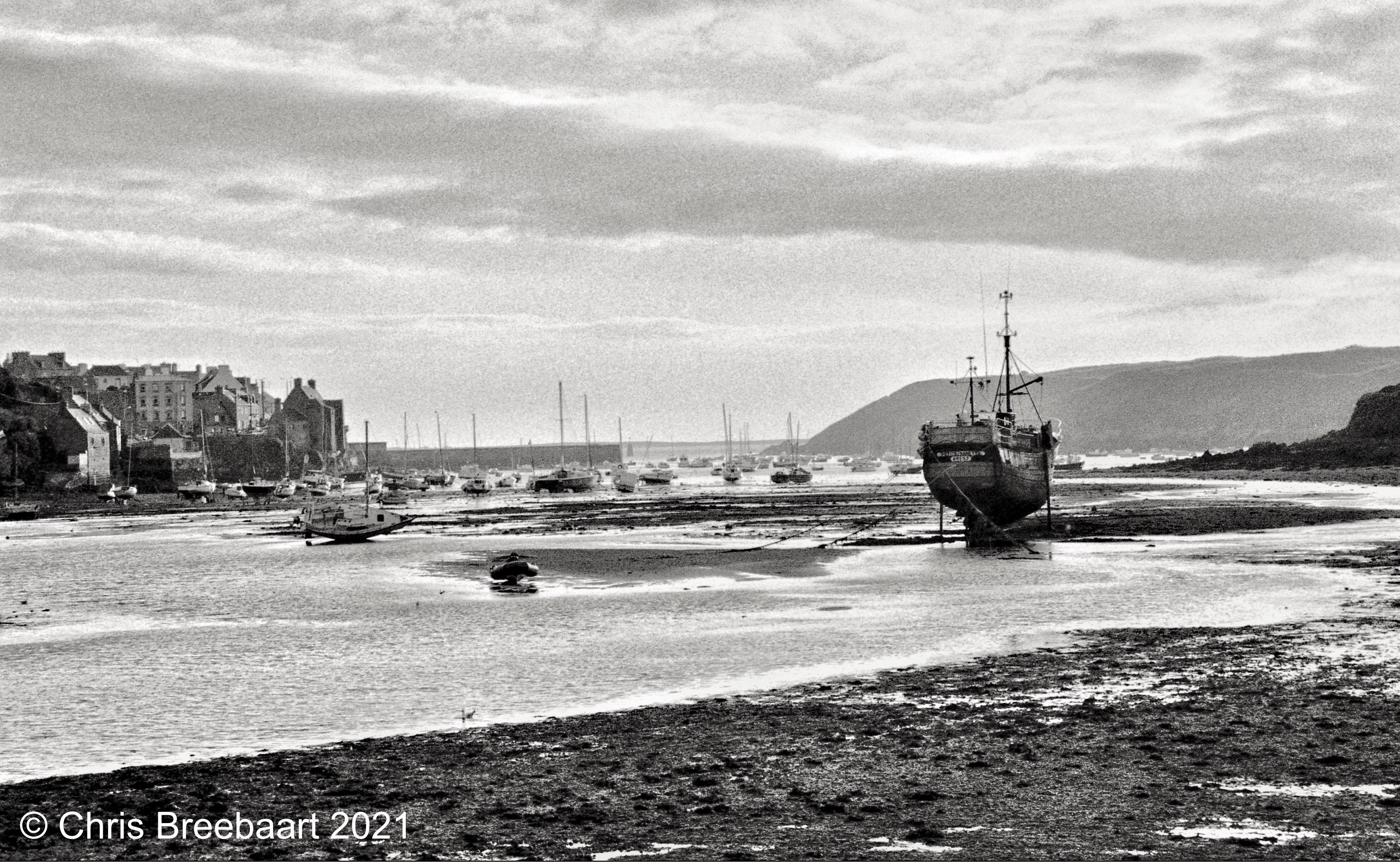 The harbor of Le Conquet at low tide during sunset, as equestrians pass by. To say I was surprised when I spotted the horses, is an understatement.