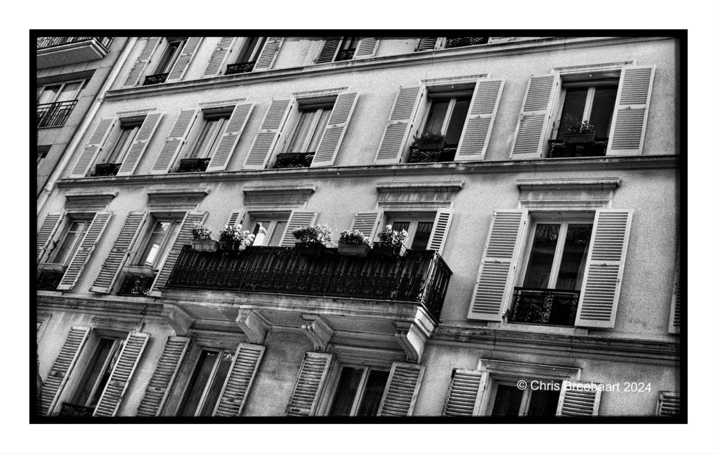 LAPC 309 is about balconies. I have to admit that I do not pay special attention to balconies, unless they trigger me as I look around and they catch my eye. I do however ‘collect’ French windows. So occasionally they pop up in a frame. This is one of those, in one of my favourite cities, Paris. From the analogue archive of December 1993.