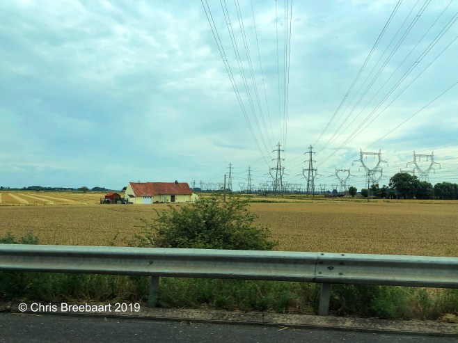 Each time we travel from or to the UK by Eurotunnel, this site next to the motorway draws my attention. A wood of pylons emerges, displaying big power lines in the air.