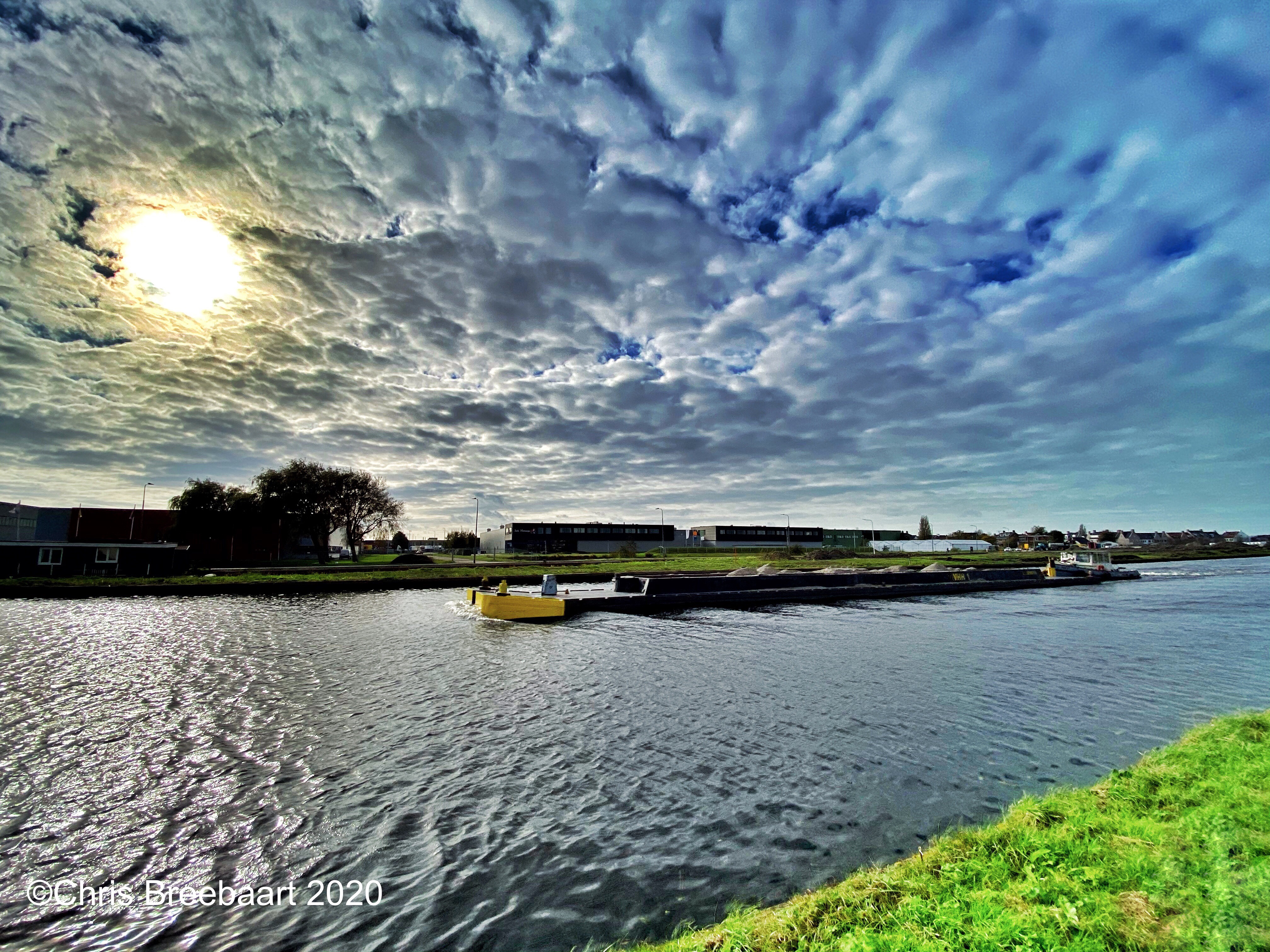 The sun is always there, even when you do not see it. On this day it was out sparkling over the canal, high lighting a beautiful sky.