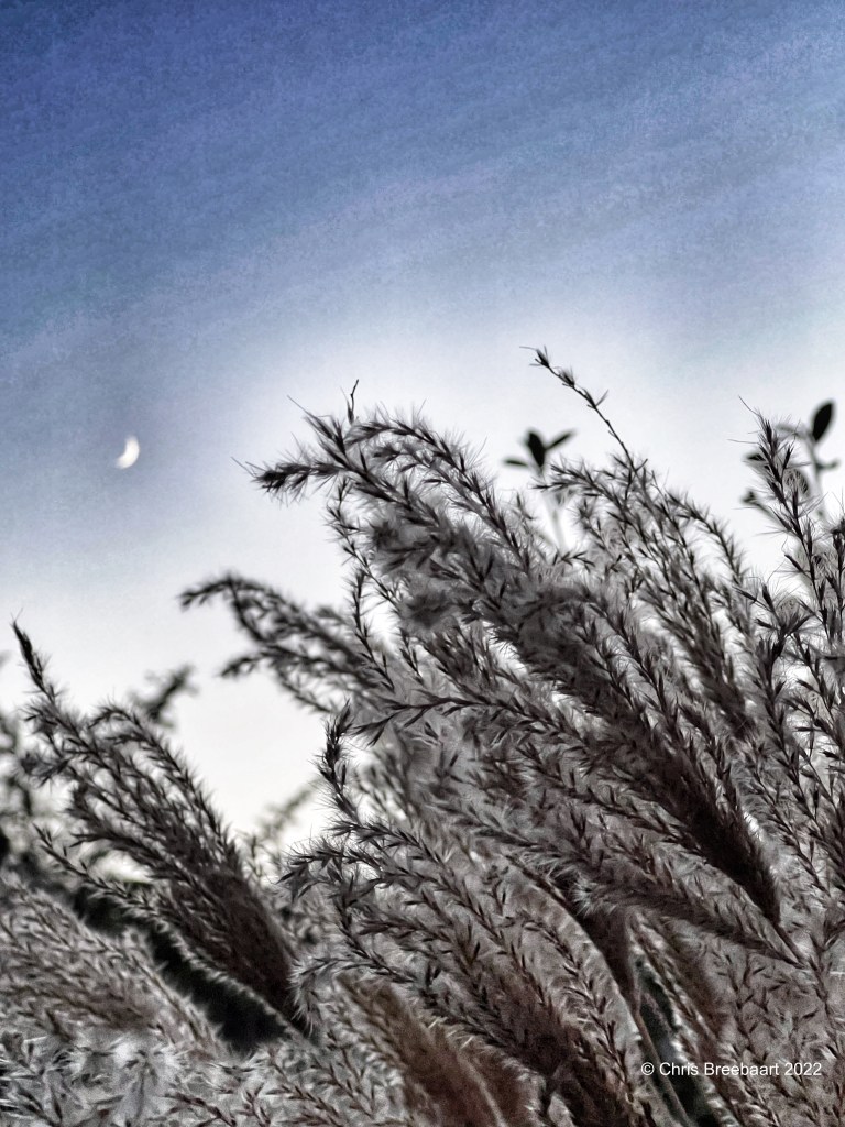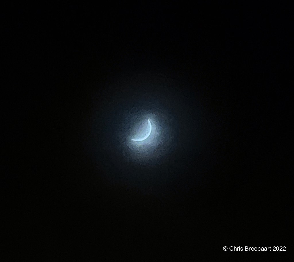 The Moon just stands there it seems, and mostly I do not pay too much attention to it. The power of the moon is enormous though, as it influences the level of the seas on Earth. At odd moments in the evening or morning I grab my camera when I spot the moon, I just can’t resist. This is one of those times, the haziness reminds me of the sand in the Sahara, the setting of Le Petit Prince, a beautiful book by Antoine de Saint-Exupéry. Could this moon be asteroid B 612? The power of imagination, see what your eyes can not see.