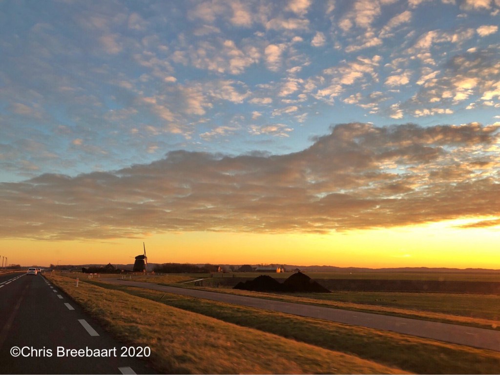 The Netherlands is as flat as a pancake. That is the way foreigners describe my precious habitat. It is not completely accurate, we do have some hills and dunes. The advantage of a flat surface is that we have lots of sky above the horizon. Here a typical Summer scene: rain filled sky and cows in the meadows, the odd windmill and farm.